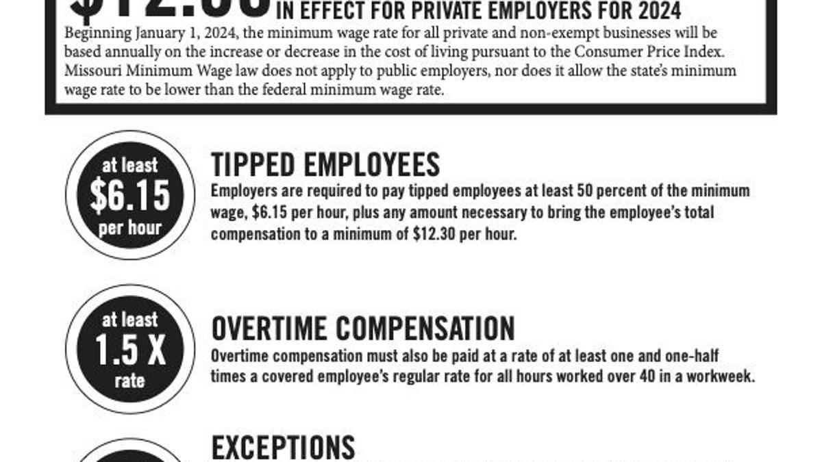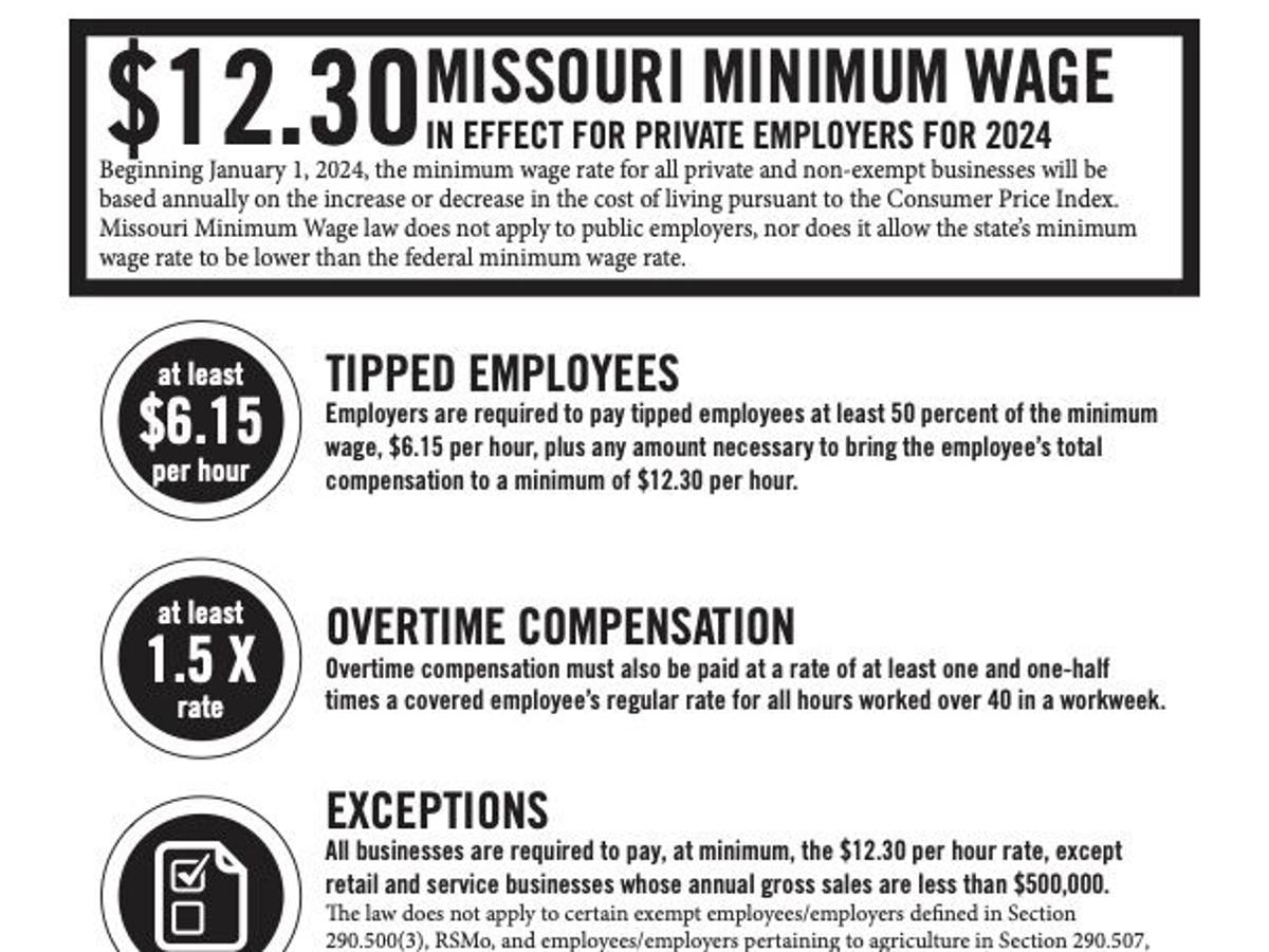 minimum wage missouri january 2024 2024 Missouri Minimum Wage | Peel ‘N Post Update Sticker | $9.95: The minimum wage has been increasing since 2018 as a result of Proposition B, this was supposed to end in 2023; however January 1, 2024 brough another increase. . Missouri’s minimum wage is set to increase on January 1. The minimum wage will rise from $12 per hour to $12.30 per hour. This will be the eighth minimum wage increase for Missouri since 2015. .